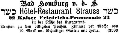 Die Blütezeit der jüdischen Gemeinde von Bad Homburg reichte von der 2. Hälfte des 19.Jahrhunderts bis in die Zeit um 1920 und stand im engen Zusammenhang zu dem Kur- und Badewesen der Stadt. Nach dem Ersten Weltkrieg zogen etliche begüterte russische Juden nach Bad Homburg.