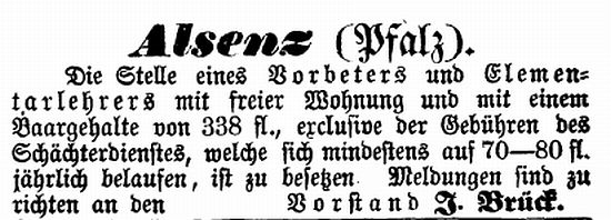 Kleinanzeige aus: "Der Israelit" vom 7.Febr. 1872
