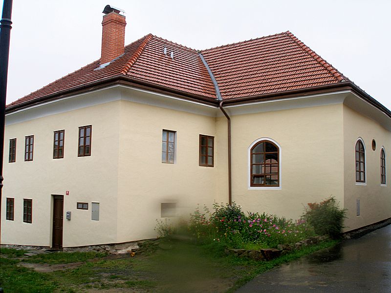 Ehemaliges Synagogengebäude vor der Sanierung (Aufn. aus: Kosovahora.cz) und nach der Sanierung (Aufn. Milos Hlávká, 2011)
