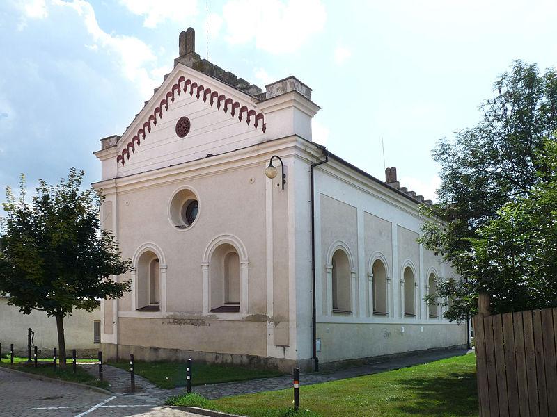 Restauriertes Synagogengebäude - Giebel mit Gesetzestafeln (Aufn. Jitka Erbenová, 2012, aus: wikipedia.org, CC BY-SA 3.0)