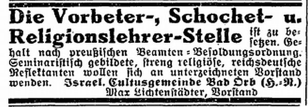 Jüdischen Kurgästen wurde ein Aufenthalt in Bad Orb empfohlen, wie aus einem Bericht der Zeitschrift „Der Israelit“ vom 18. Mai 1933 hervorgeht:
