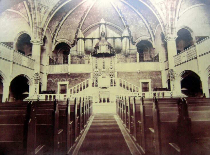 Synagoge am Klosterplatz (hist. Aufn., aus: wikipedia.org, gemeinfrei und Aufn. Stadtarchiv)