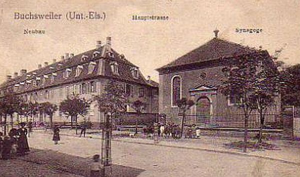 Seit dem beginnenden 14.Jahrhundert sind Juden in Buchsweiler urkundlich nachweisbar. Eine aus dem 18.Jahrhundert stammende Synagoge wurde 1842 (oder 1844) durch die Erstellung eines Neubaus ersetzt; im Keller befand sich ein Ritualbad. Zur Finanzierung des Synagogengebäudes hatte auch die Kommune einen Beitrag geleistet.