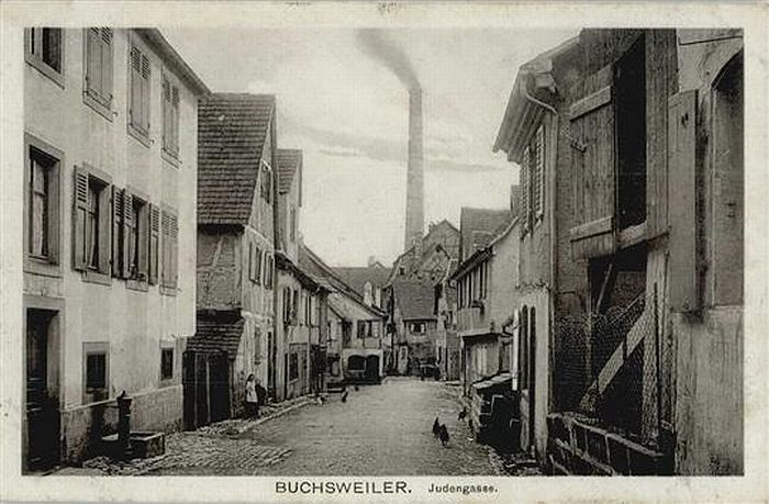„Judengasse“ in Buchsweiler (hist. Postkarte, aus: alemannia-judaica.de)