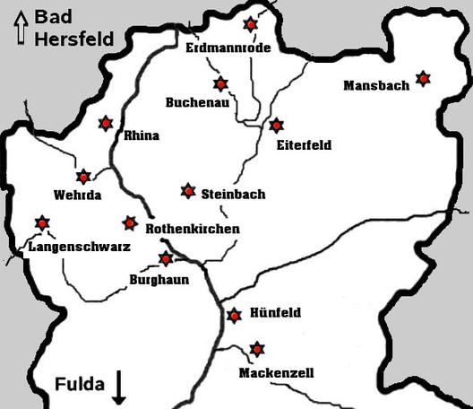 (Karte aus: E. Sternberg-Siebert, Auf den Spuren jüdischen Lebens im Hünfelder Land)
