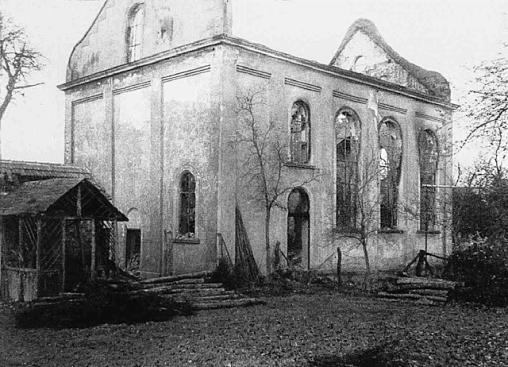 Niedergebrannte Synagoge (Aufn. 1939, aus: Dokumentation E. Sternberg-Siebert)