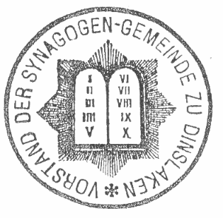 Synagogenfront (hist. Aufn., um 1930, aus: altstadt-dinslaken.de) Siegel des Synagogenvorstandes