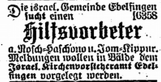 In der „Zeitung für die israelitischen Gemeinden in Württemberg” vom 1.Nov. 1929 hieß es u.a. in einem Bericht von S.Schachnowitz über das religiöse Leben der Landgemeinde: „ ... am Sabbat leitete er (Anm.: Lehrer Sally Ottensooser) den Gottesdienst in Edelfingen. Ich werde diesen einfachen, schlichten Gottesdienst in der kleinen Landgemeinde mit ihrer Scheunensynagoge ... nie vergessen. Der von alten, biederen Dorfjuden gefüllte Raum, die alten Gesänge unter lebhafter Mitwirkung der ganzen Gemeinde, ... Der Sabbat war im Orte, das konnte man sogar dem vollbeladenen Heuwagen und dem geruhig darauf schlafenden brauen Bauernjungen ansehen. Wie da die alten Leute, alte Frauen tief bedeckt, auf den Stühlen und Bänken vor den Häusern saßen, in Erwartung der Bohnensuppe und Sabbatkugel, die alle aus dem gemeinsamen Bäckerofen Glockenschlag elf kamen. ...”
