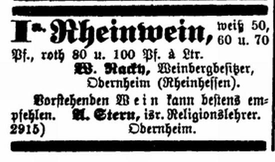 Stellenausschreibung aus der Zeitschrift „Der Israelit“ vom 24.6.1889