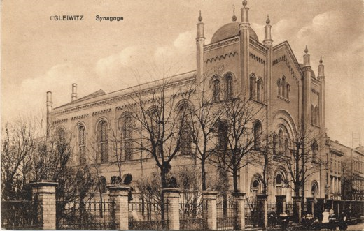 Der Brand der Synagoge in der Kristallnacht – in der Nacht des 9.November 1938 – ist ein Symbol von Unterdrückung und Verfolgung der jüdischen Gemeinde von Gleiwitz, die mehr als 150 Jahre das Stadtbild mitbestimmte. Die Deportationen von mehr als 600 jüdischen Gemeindemitgliedern ins Vernichtungslager Auschwitz-Birkenau waren im Dezember 1943 abgeschlossen.