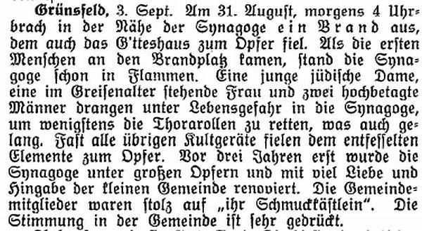 aus der Zeitschrift „Der Israelit“ vom 10.9.1931