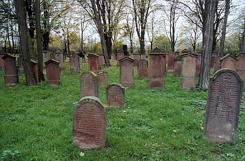 Eingangstor und Teilansicht des jüdischen Friedhofs in Grünstadt (Aufn. J. Hahn, 2004)