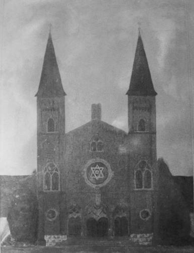 Synagogenfassade (Aufn. aus: juedische-allgemeine.de) und Blick auf die Hinterfront (Aufn. Klaus Bärwinkel, 2021, aus: commons.wikimedia, CC BY-SA 4.0)