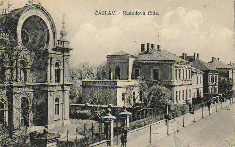 Westlich von Hermannstädtel liegt die Ortschaft Caslau bzw. Tschaslau (tsch. Cáslav, derzeit ca. 10.000 Einw., hist. Karte, aus: europe1900.eu), in der ab Mitte des 19.Jahrhunderts eine jüdische Gemeinde beheimatet war. Um 1870/1880 gehörten der neugegründeten Gemeinde knapp 300 Angehörige an, die zumeist aus den umliegenden Dörfern stammten. Seit den 1880er Jahren gab es auf dem kommunalen Friedhof einen abgegrenzten Bereich, der verstorbenen Juden zur Verfügung stand. 1899/1900 weihte die hiesige Judenschaft einen im maurischen Stil, vom Architekten Wilhelm Stiassny konzipierten Synagogenneubau ein, dem eine Schule angeschlossen war.