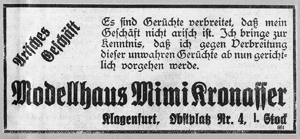 Ähnlich wie bei den „Aktionen“ am 1.April 1933 im „Altreich“ zogen nach dem sog. „Anschluss” vor jüdischen Geschäften Klagenfurts SA-Posten auf, um potentielle Käufer am Betreten der Läden zu hindern; einige jüdische Geschäfte wurden zwangsweise geschlossen; Plünderungen und Zerstörungen unterblieben jedoch. Wenige Tage später wurden die antijüdischen Maßnahmen ausgeweitet: nun folgten Hausdurchsuchungen, Beschlagnahme von Vermögen und Sperrung aller Konten. Jüdische Unternehmer mussten innerhalb kürzester Zeit ihre Betriebe verlassen, die nun unter kommissarische Verwaltung gestellt und anschließend enteignet wurden. Gleichzeitig wurden jüdische Vereine aufgelöst.