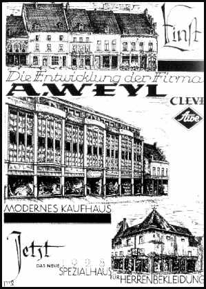 Um 1900 betrieben die meisten Klever Juden Einzelhandelsgeschäfte in der Innenstadt, darunter die Kaufhäuser Cosman, Gonsenheimer, Leffmann und Weyl; das "Kaufhaus Weyl" in der Großen Straße wurde von den Gebrüdern David und Louis Weyl betrieben. Neben der Margarinefabrik des niederländischen Unternehmers und frommen Juden Simon van den Bergh - er produzierte hier die speziell auf die jüdischen Speisevorschriften abgestimmte "koschere" Margarine „Tomor“ - gab es noch weitere jüdische Firmen in Kleve; zu den bedeutendsten zählten die „Clever Lederwerke“ von Abraham Haas in der Briener Straße.
