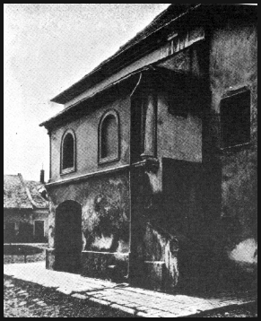 Synagoge in Kojetein (hist. Aufn., aus: judaicresources.com und commons.wikimedia.org, gemeinfrei)