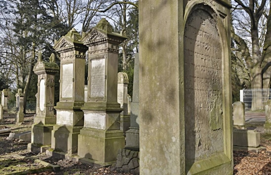 Alter jüdischer Friedhof an der Heideckstraße (Aufn. Franz Josef Knöchel, 2014 und Dirk Jochmann, aus wz-newsline.de)