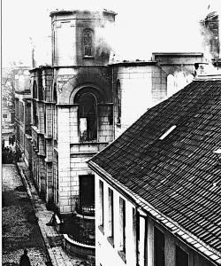 ausgebrannte Synagoge in der Petersstraße (hist. Aufn., Stadtarchiv)