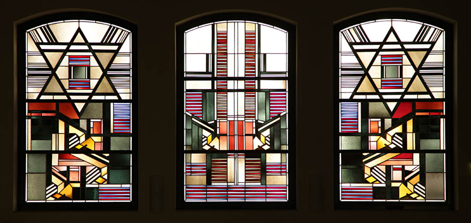 Glasfenster von Johan Thorn Prikker in der neuen Synagoge* (Aufn. Ralf Janowski, aus: kultur-in-krefeld.de)