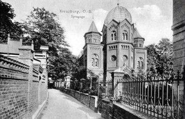 Seitdem Juden zu Beginn des 19. Jahrhunderts nach Schlesien einwanderten, haben sich auch in Kreuzburg Familien niedergelassen, die zumeist vom Klein- und Hausierhandel lebten, aber auch als Musikanten ihr kärgliches Leben fristeten. Zuvor lebten bereits in den beiden Nachbarorten Kronstadt und Pitschen jüdische Familien. Die größte Judengemeinde in der Umgebung gab es im Dorf Kraskau; sie gilt als Vorgängerin der Kreuzburger Gemeinde; denn nach einem Brand der dortigen Synagoge 1845 verließen die meisten jüdischen Familien Kraskau und machten sich in Kreuzburg ansässig. In den ersten Jahrzehnten des 19.Jahrhunderts nahm die Zahl der in Kreuzburg lebenden Juden rasch zu. Vermutlich um 1850 konstituierte sich offiziell die Synagogengemeinde Kreuzburg; in einem Antrag der „Israelitischen Corporation“ zur Anerkennung als Kultusgemeinde vom Oktober 1847 erfährt man Näheres über die damalige Situation der Kreuzburger Judenschaft: