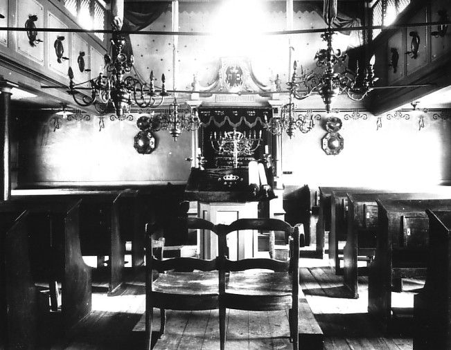 Straßenfront des Synagogengebäudes Innenansicht der Synagoge (hist. Aufn., Archiv)