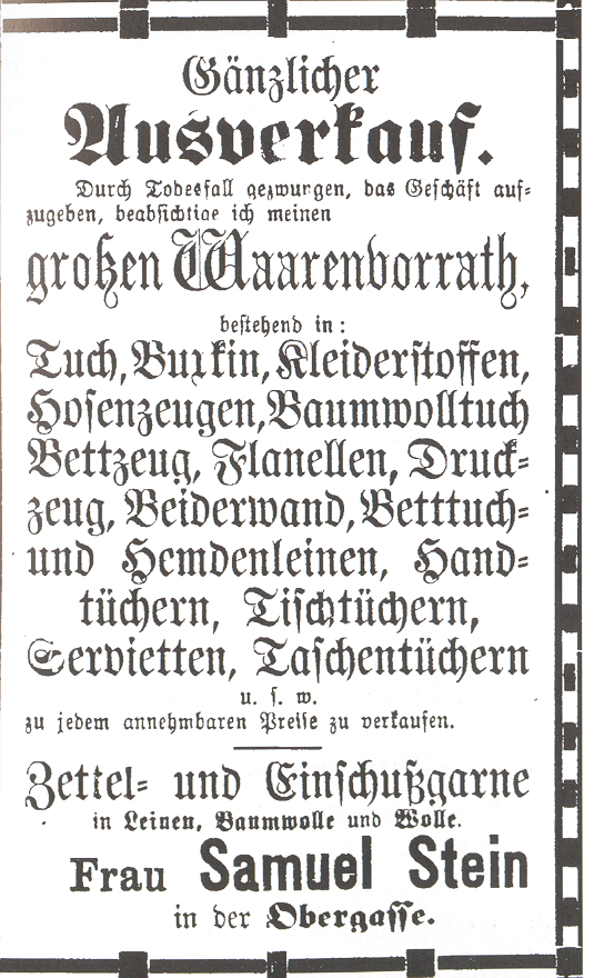 Anzeigen jüdischer Geschäftsleute aus Lauterbach: