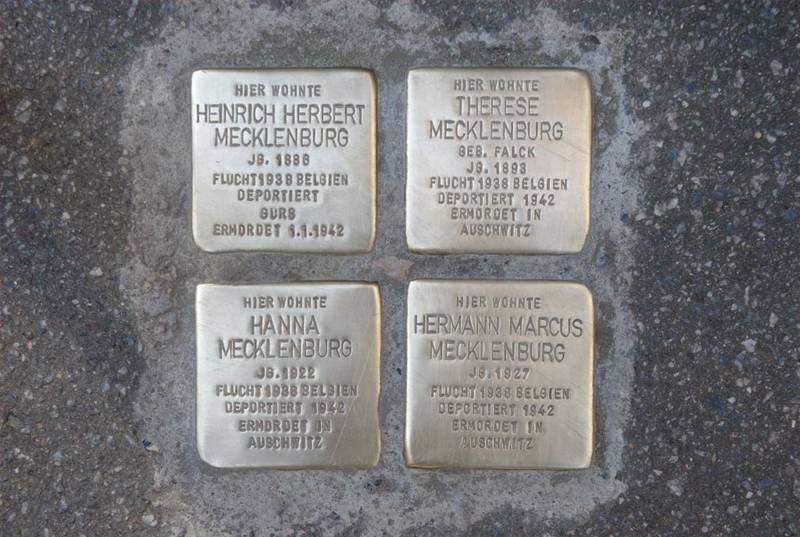 In Bad Schwartau - einige Kilometer nördlich von Lübeck - erinnern in der Auguststraße vier sog. "Stolpersteine" an Angehörige der jüdischen Familie Jaschek; nur ein Familienmitglied überlebte die Deportation ins Ghetto Riga.