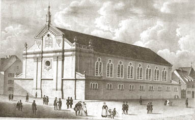 Die im Laufe des 19.Jahrhunderts stark angewachsene Judenschaft in der Stadt machte den Bau einer größeren Synagoge notwendig; das neue Gotteshaus der Mülhausener jüdischen Gemeinde wurde 1849 fertiggestellt und unter großer öffentlicher Anteilnahme eingeweiht. In der „Allgemeinen Zeitung des Judentums“ vom 1.Jan. 1850 wurde über die Einweihung der neuen Synagoge wie folgt berichtet: