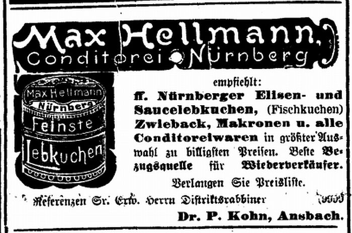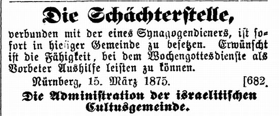 Angaben aus: Arnd Müller, Geschichte der Juden in Nürnberg 1146 - 1945. Beiträge zur Geschichte u. Kultur ..., S. 170