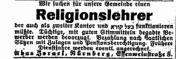 zwei Stellenangebote der israelitischen Kultusgemeinde Nürnberg aus dem Jahre 1924 (aus: „CV-Zeitung“)