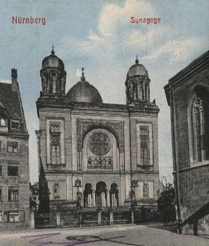 Mit der Aufhebung aller Ausnahmebestimmungen für Juden in Bayern begann der Zuzug von jüdischen Familien nach Nürnberg, größtenteils aus Dörfern und Kleinstädten des nordbayrischen Raumes; vor allem Juden aus Fürth drängten in das wirtschaftlich boomende Nürnberg. 1859 gründeten die Nürnberger Juden einen Religionsverein, drei Jahre später eine Kultusgemeinde; gleichzeitig richtete man eine Religionsschule ein. Gottesdienste wurden zunächst im Gasthaus „Zum weißen Lamm” abgehalten. Im März 1870 wurde der Grundstein für die neue Synagoge am Hans-Sachs-Platz am Pegnitz-Ufer gelegt. Der Bau war vom Stuttgarter Architekten Adolf Wolff im maurischen Stil konzipiert worden; vier Jahre später war der Bau vollendet.