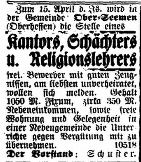 Mehrheitlich bestritten die jüdischen Familien Ober-Seemens ihren Lebensunterhalt als Kleinkaufleute, andere waren Viehhändler und Handwerker.