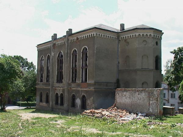 Ehem. Synagogengebäude (Aufn. Ignacego Krasickieg, um 2005, aus: wikimapia - Andrzej Otrebski, 2015, aus: wikipedia.org, CC BY-SA 4.0)