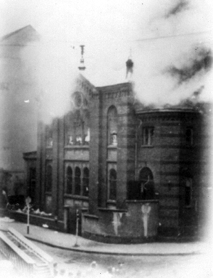 Brennende Synagoge in Saarbrücken Nov. 1938 (Stadtarchiv)