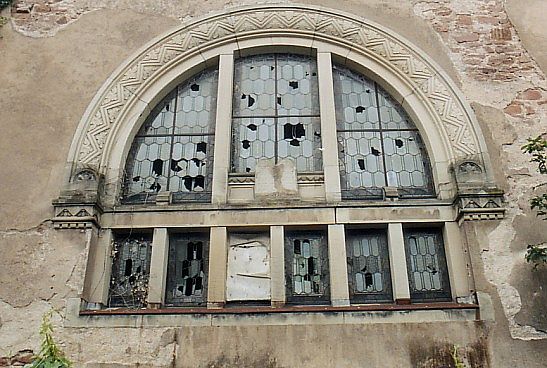 Synagogenfenster vor und nach der Restaurierung (Aufn. J. Hahn 2004 und um 2010)