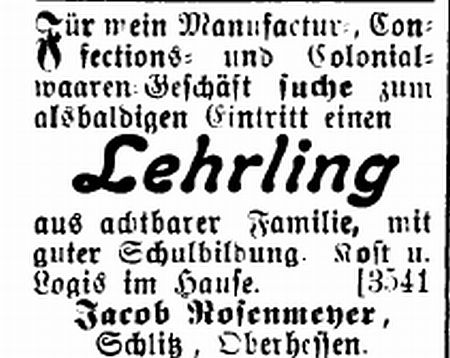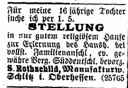 Stellenanzeigen jüdischer Gewerbetreibender von 1901 bzw. 1922