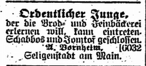 Lehrstellenangebote jüdischer Geschäftsleute um 1900:
