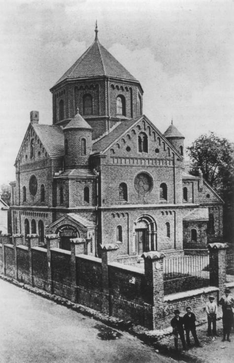 Nach jahrelangen Planungen weihte die jüdische Gemeinde am 8.März 1872 - in Anwesenheit der Honoratioren der Stadt und zahlreicher Stadtbewohner - ihre neue Synagoge ein. Der Kuppelbau war an der Ecke Malteserstraße/Gerichtsstraße im neuromanischen Stil errichtet worden. Zur Einweihung sprach der Solinger Vorbeter Hirsch Laubmann die folgenden Worte: „ … Möge das Gotteshaus, das wir eingeweiht (haben), der ewig dauernde Mittelpunkt unserer Gemeinde bleiben … Mögen auch die herrlichen Klänge, welche das schöne Weihefest vernehmen ließ, in der harmonischen Übereinstimmung aller Herzen unserer Stadtbewohhner noch lange nachhallen ...“