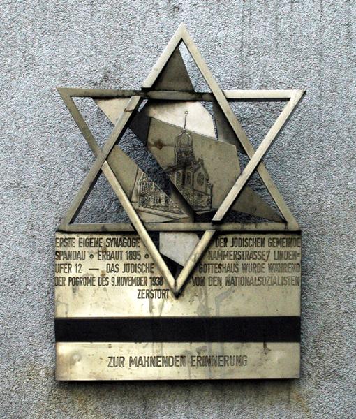 Dieses Mahnmal erinnert an die Leiden der Spandauer Bürger jüdischen Glaubens während der Terrorherrschaft der Nationalsozialisten. Unweit dieser Stelle, auf dem Grundstück Lindenufer 12, stand das Jüdische Gotteshaus, das 1938 zerstört wurde.