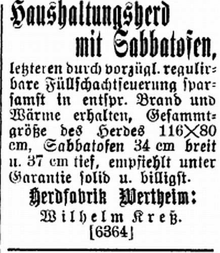 Anzeige aus der Zeitschrift "Der Israelit" vom 14.Aug. 1902