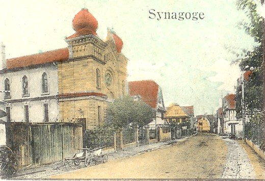 Synagoge in Wolfisheim (colorierte hist. Ansichtskarte, um 1900)