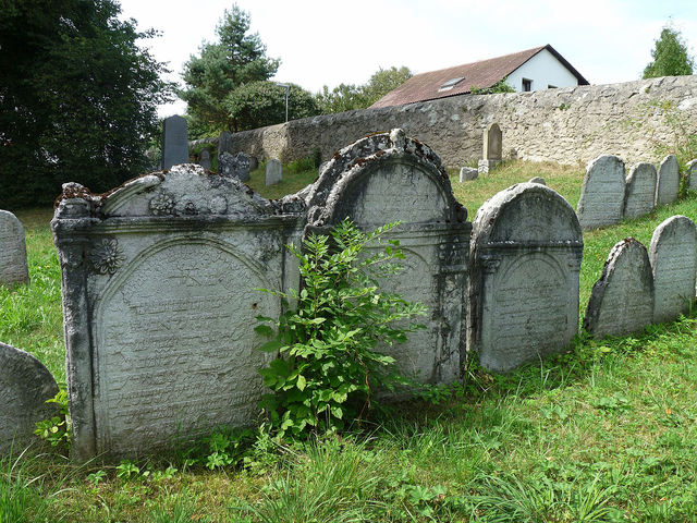 Ehem. Eingang und Grabsteinrelikte des jüdischen Friedhofs (Aufn. J. Erbenová, 2011, aus: wikipedia.org, CC BY-SA 3.0)