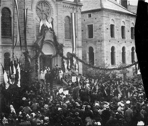 Zabern, 15. März. Einweihung der neuen Synagoge. Nach langem Hoffen und Herren sind nun auch die Israeliten Zaberns zu einem neuen Gotteshaus gelangt. An der Lützelburgerstraße erhebt sich der stolze Bau, der mit seiner weithin schauenden Kuppel und im sauberen Schmuck seines weißen Vogesensandsteingewandes einen gar freundlichen Eindruck macht. Der Einweihungstag am vorletzten Freitag war ein Festtag für die israelitische Gemeinde, dem auch alle diejenigen Andersgläubigen teilnahmsvoll gegenüberstanden, die an einem friedlichen Nebeneinanderwohnen der einzelnen Konfessionen keinen Anstoß nehmen. ... Die neue Synagoge wurde zum großen Teil aus eigenen Mitteln der israelitischen Gemeinde gebaut. Der Staat spendete einen Beitrag von 16.000 Mark, die Stadt einen solchen von 5.000 Mark. ... Schließlich ist noch des Kommunalbaumeisters Herrn Hannig zu gedenken, der die Pläne zum Haus entworfen, und dem die israelitische Gemeinde nicht nur ihr schmuckes Gotteshaus, sondern die Stadt Zabern auch ein neues, stilvolles öffentliches Gebäude verdankt.