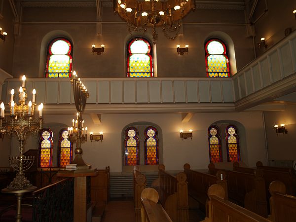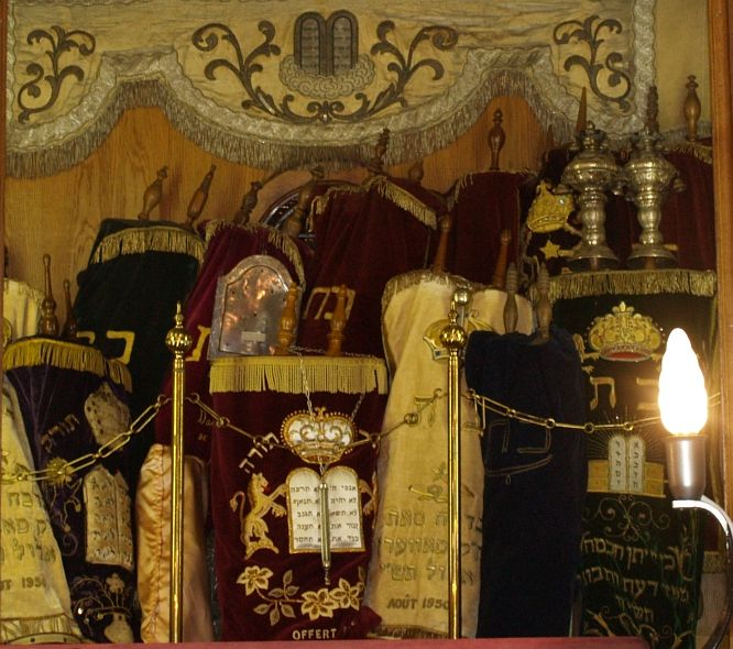 Synagogeninnenraum und Thorarollen der Synagoge Saverne (beide Aufn. J. Hahn, 2007)