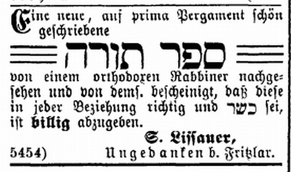 In Ungedanken gab es eine Thoraschreiberei, die von der Familie Lissauer schon über viele Generationen hinweg betrieben wurde. Die Vorfahren der Familie kamen aus Lissa (Prov. Posen); nachweislich sollen sie dort seit 1654 das Gewerbe der Soferim betrieben haben.
