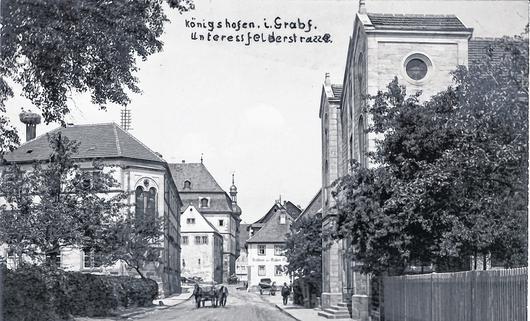 Erstmals sind Juden in der derzeit noch jungen Stadt Königshofen gegen Ende des 13.Jahrhunderts erwähnt. Danach lassen sich erst wieder im 17.Jahrhundert urkundliche Belege für die Anwesenheit jüdischer Familien erbringen. Bei der Erstellung der Matrikellisten (1817) sind für Königshofen fünf Familienvorstände aufgeführt. Die Gründung einer eigenständigen jüdischen Gemeinde erfolgte zu Beginn des 19.Jahrhunderts. In der 1.Etage eines Gebäudes in der Rathausstraße besaß die Gemeinde eine Religionsschule und im 2.Stockwerk einen Betsaal. Im Untergeschoss befand sich die Wohnung des christlichen Synagogendieners. Ende Juli 1904 weihte die jüdische Gemeinde - unter Leitung des Distriktrabbiners Kohn aus Burgpreppach - ihre neue, im neogotischen Stil errichtete Synagoge in der Bamberger Straße ein. Über die Einweihung berichtete die Zeitschrift "Der Israelit" in ihrer Ausgabe vom 1.Sept. 1904: