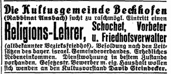 In der ersten Hälfte des 19.Jahrhunderts erreichte die israelitische Kultusgemeinde von Bechhofen ihren personellen Höchststand.