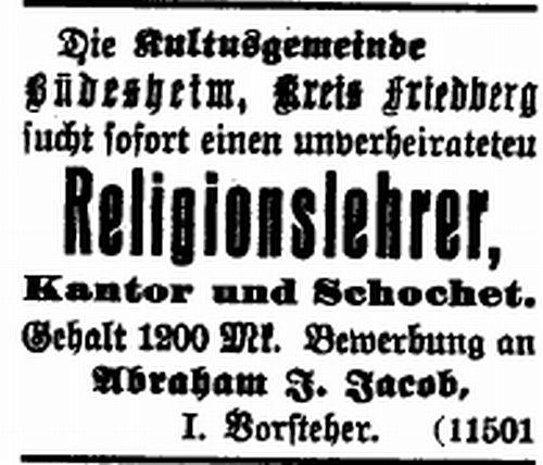 Zur Besorgung religiöser Aufgaben hatte die kleine Gemeinde zeitweilig einen Religionslehrer angestellt.
