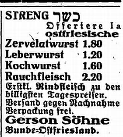 Anzeigen aus der Zeitschrift „Der Israelit“ vom 28.6.1882 und vom 11.8.1890